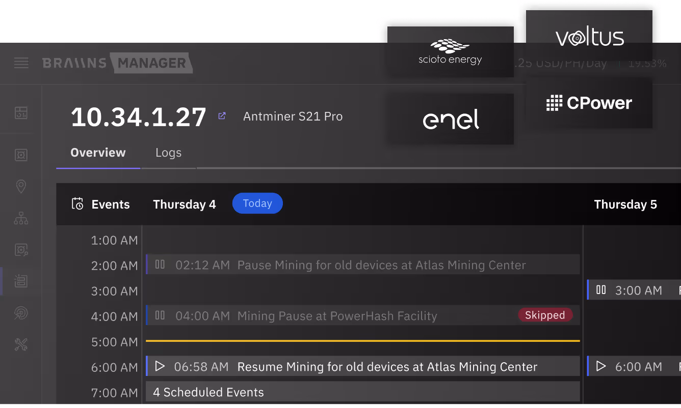 Absolutely! The Triggers feature allows you to set automated actions based on conditions like hashrate, temperature, or power usage. You can also update your Workers list using the automatic network scanning feature. Additionally, for curtailment needs – such as participating in demand response programs or planning curtailment – you can efficiently manage them using the Curtailment features.
