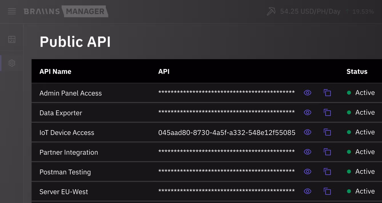 Build your custom solutions and workflows on top of the powerful Braiins Manager backend. It’s the perfect tool for those with advanced use cases and needs.